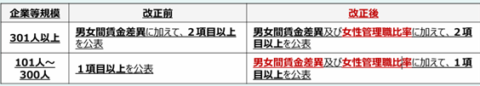 ◎従業員数が101~300人の企業は以下の3項目以上の情報公表が義務付け