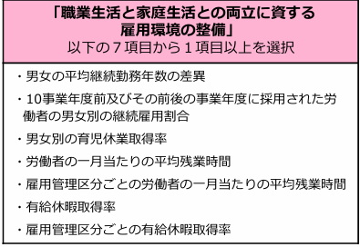 ③女性労働者に対する職業生活に関する機会の提供に関する実績、または職業生活と家庭生活との両立に資する雇用環境の整備に関する実績。(上記の表Ⅰ、表Ⅱの項目から1項目以上を選択して公表)