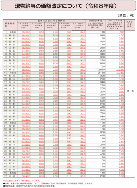 2026年4月・10月から現物給与の価額が改正されます